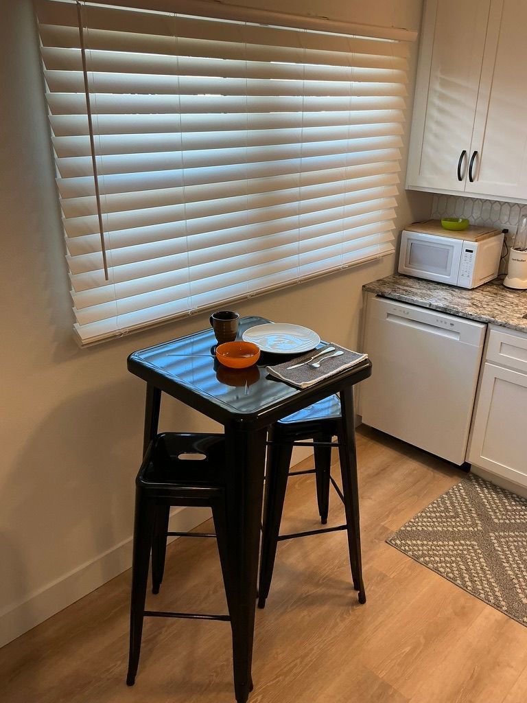 This one-bedroom unit boasts a contemporary kitchen and bathroom, featuring a walk-in shower with a dressing area, as well as a full-sized washer/dryer. A new deck provides outdoor seating for morning coffee and to watch our Western Kansas sunrises. Kitchen comes fully furnished with everything you need to make a meal including small appliances and NutriBullet. Living area has a large flatscreen to stream your favorite programs. Bed and bath linens, household cleansers and laundry detergent are included. Absolutely no smoking allowed.